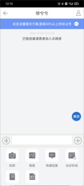(5)将患者加入到云病房,这样有什么事就可以这个页面框中发送信息给患者了。