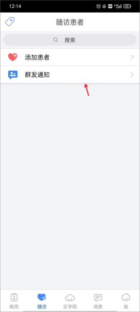 (1)切换到【随访】界面,选择“群发通知”。