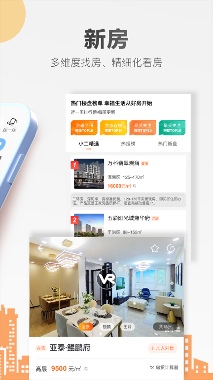 - 精准搜索:涵盖区域、价格、类型、户型等多维度的搜索方式,同时支持综合搜索。