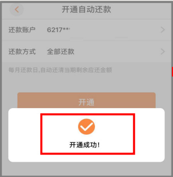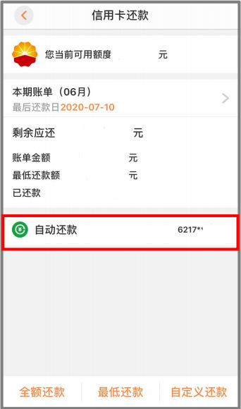 4、开通成功后,在信用卡还款界面可看到自动还款签约卡号