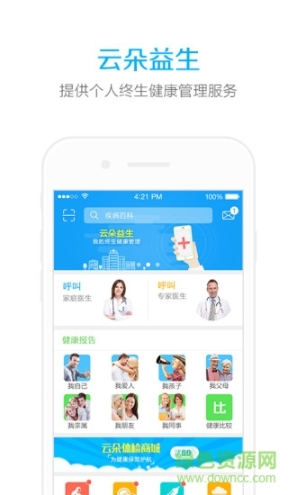 云朵益生:我的终生健康管理,互联网大健康整体解决方案,云朵益生健康云平台以用户终身健康管理服务为核心,基于三屏联动的线上线下无缝应用体验,将用户、医生、医院、保险、药品和商品厂家、地方渠道等集成在一起。