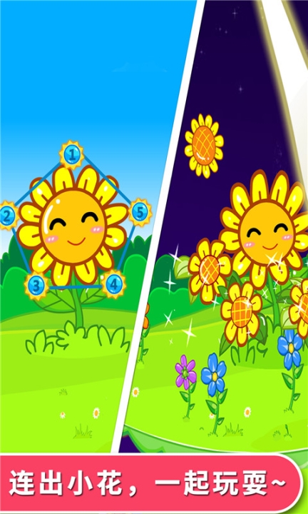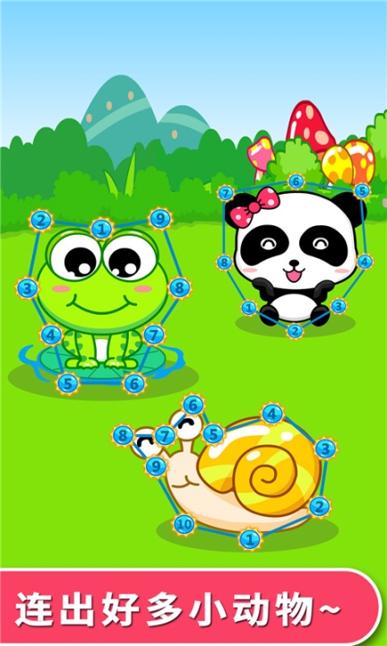 小兔子、小青蛙、蜗牛、向日葵……宝宝们按着数字的顺序连线,就可以见到TA们哦!