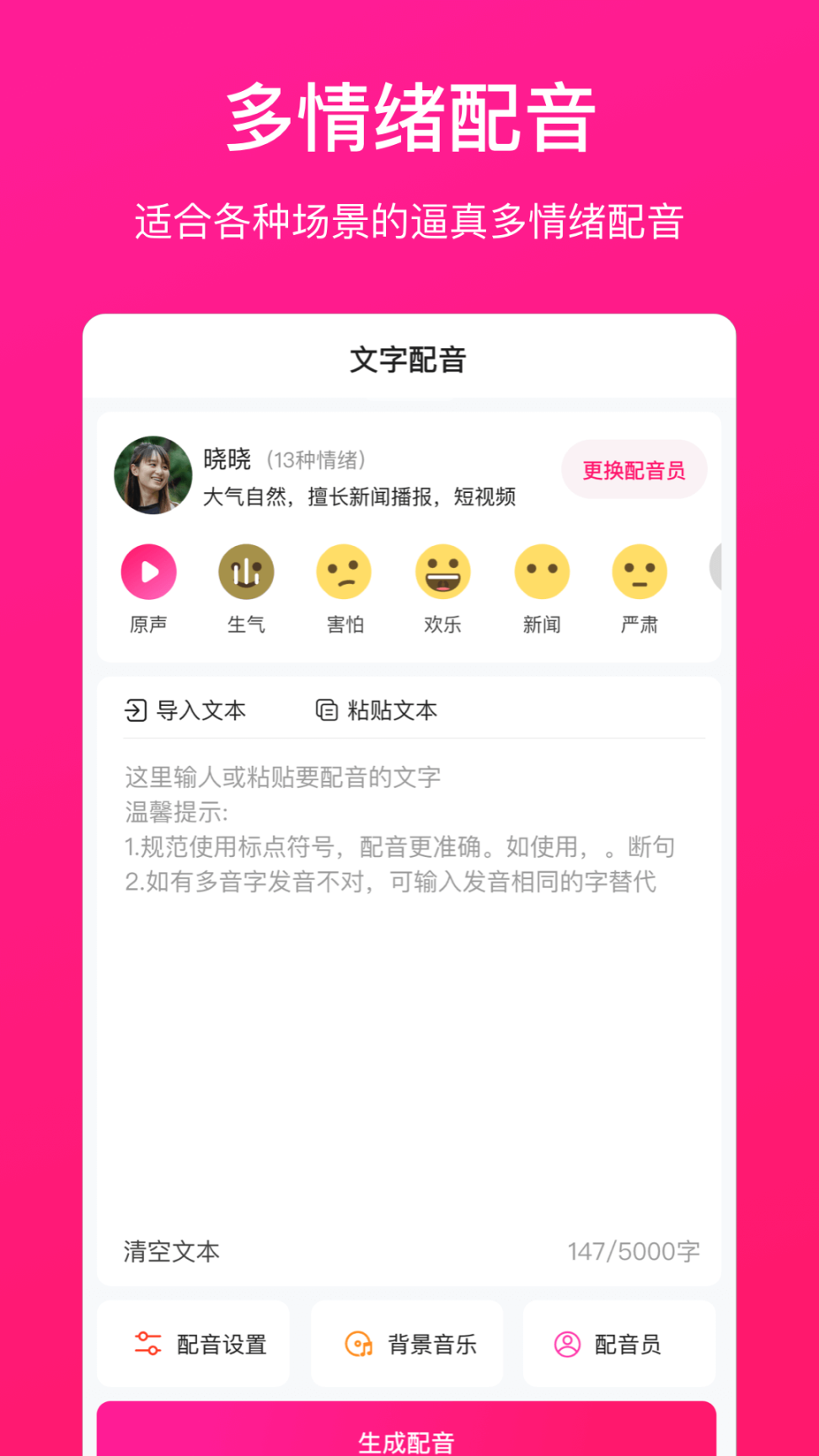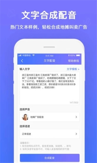 1. 能够合成用于商场宣传、广告促销等场景的配音,无需人工持续叫卖,既方便又实用。