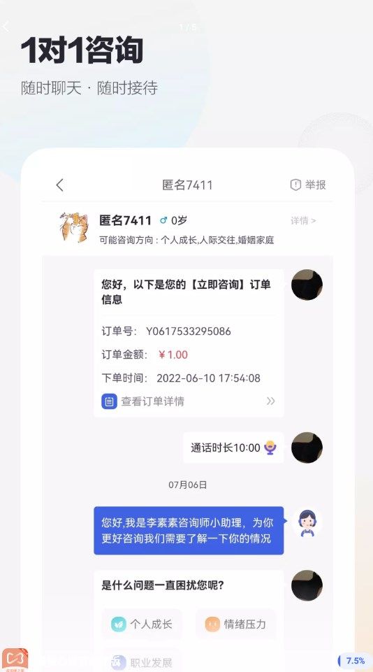 1、线上提供一对一在线咨询服务,任何与心理相关的问题都能在线咨询。