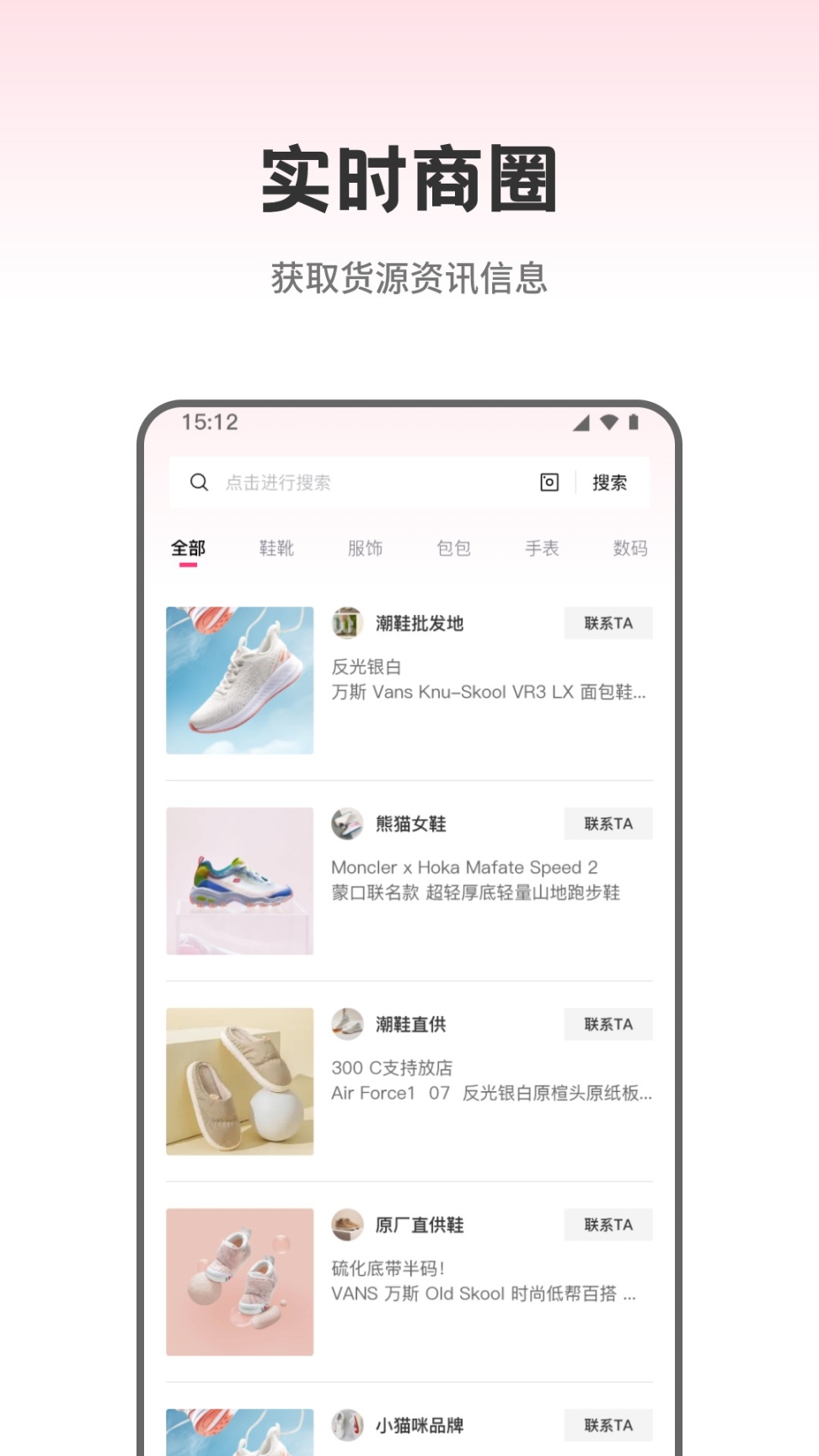 特别值得一提的是,莆田鞋批发app整合了来自全国的一手厂家与微商资源,是一款深受微商与实体店青睐的找货app。它每年会拒绝10万炒货商家的加入申请,构建起没有中间商的一手货源平台。无论是个体消费者,还是商户,皆可在这个商城里,以最为实惠的价格采购到心仪的商品。倘若你对此感兴趣,欢迎来本站下载体验。