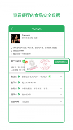 2. 浏览餐厅食品安全和第三方检验检测信息;