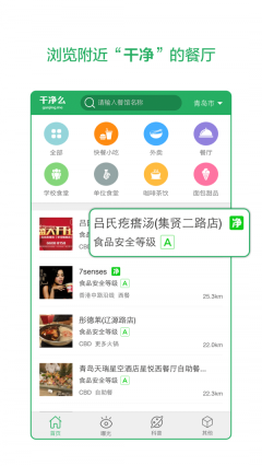 “干净么App”是一款依托移动互联网,能高效串联各个环节与部门的第三方卫生监管平台。干净么App会运用移动互联网的策略,来打好食品安全这场战役。如今,“干净么”已然成为人们选择就餐场所的一项关键标准。