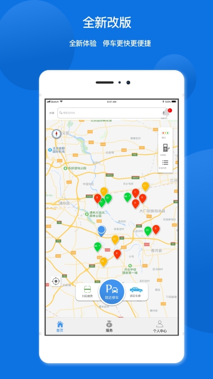 4、找车位,定位筛选相对优惠且近的停车场信息,空车位,价格,一目了然,让车位尽在掌握;