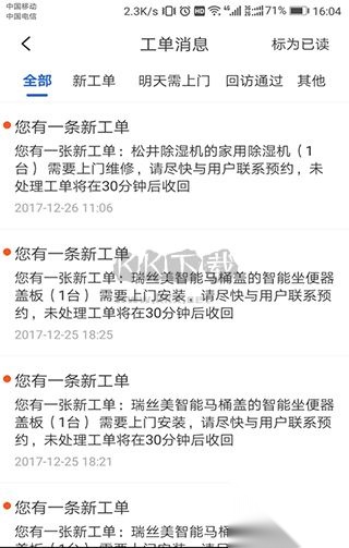 专业网络派单系统,操作简便且高效,技工仅需轻轻按下按钮,就能与客服、厂家、工程师等多方人员进行沟通。