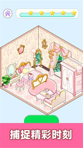 4、玩家需依据不同的关卡主题来布置房间空间,布置完成后,系统会按照玩家的布置状况给出星级评分,并发放相应奖励。