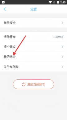 3、进入设置页面后,点击【我的地址】选项,即可进入我的收货地址页面。