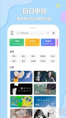 1. 海量素材,涵盖二次元头像,包括情侣头像、男生头像、女生头像、个性头像,还有手机壁纸、签名网名等。