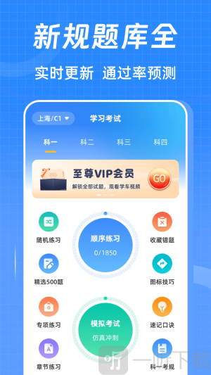 3. 涵盖科目一至科目四的全部学习题库,能随时把握各类题库要点中的经典问题,从此再也不用担心答错。