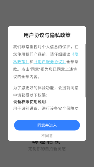 1. 下载并安装完成后,进行授权操作以打开应用,阅读并同意“用户协议与隐私政策”。