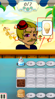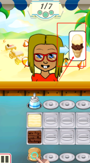 2、观察红框内冰淇淋的模样,从下方挑选材料依样制作,目前订单完成进度为0/7个。