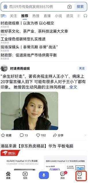 1、打开百度应用进入软件首页在右下角点击【我的】进入