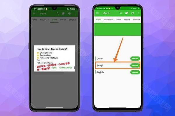 4、重启之后,再次打开zfont,点击Home页面,选择emoji,接着点击“See All(看全部)”。按照此流程操作完毕,zfont的emoji表情包就能正常使用了。