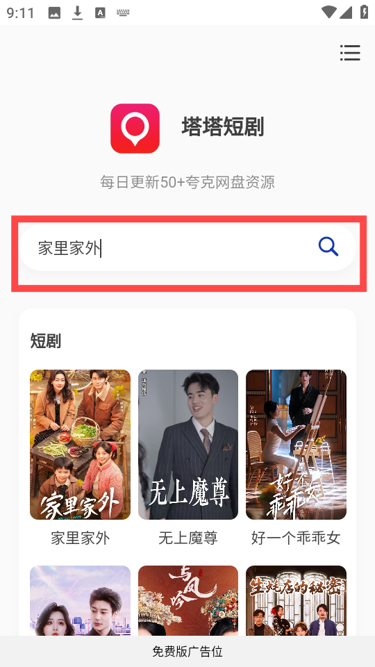 塔塔短剧,每日海量更新各类短剧资源。用户只需输入关键词,就能迅速找到自己钟爱的短剧作品。平台实时整合全网最新短剧,统统免费,还具备高效秒播功能,你心仪的短剧这里全都有,快来一起追短剧吧!