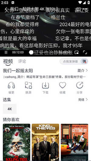 4、点击您想看的影片,播放界面具备弹幕与投屏功能。