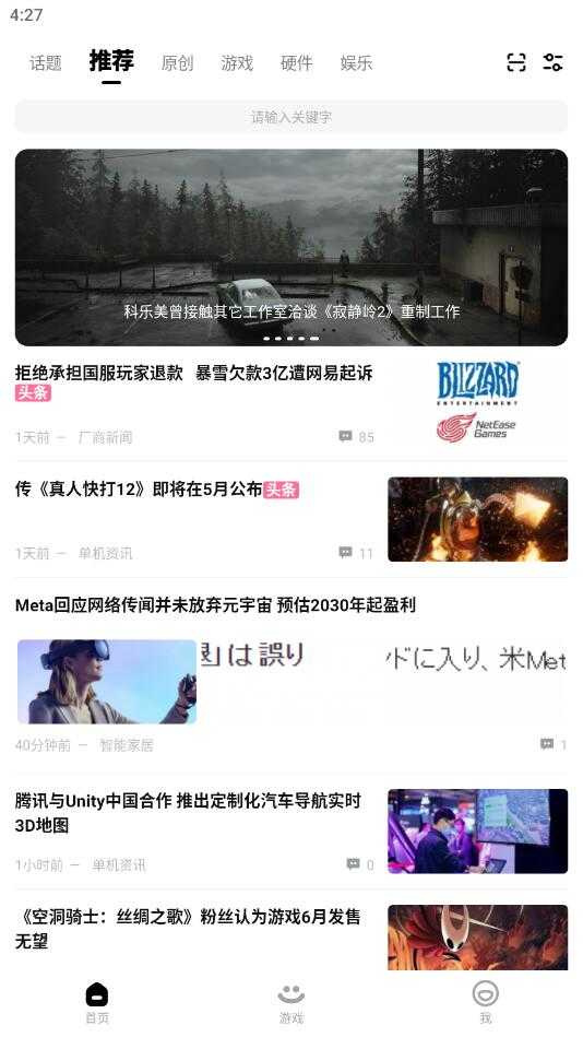 1、首页:首页涵盖话题、论坛、原创、游戏、硬件、娱乐等各类板块。玩家能够在心仪的内容分类中浏览、评论,还能发布自己的游戏相关帖子。