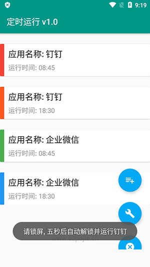 定时运行,一款便捷实用的程序自动运行神器,不仅能自动解锁手机,还能自动开启程序,全程免费无负担。只需简单设置相关数据参数,即可轻松运行,操作简便易上手。感兴趣的小伙伴们,赶快行动起来吧!