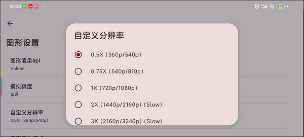 6、要是手机配置相对较低,像搭载骁龙6系处理器的手机,打完驱动后实际上也能凑合着模拟switch 。此时,把yuzu的模拟分辨率调整为0.5倍(360x540),采用最低分辨率,总归是能够运行的。