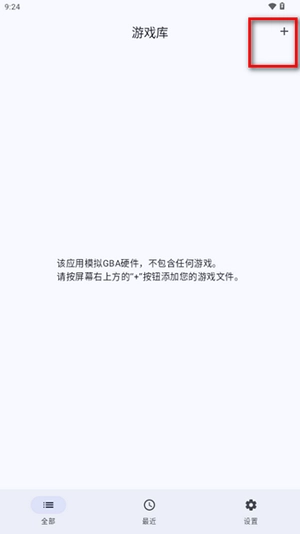 2. 打开软件后,点击“+”号来添加游戏,游戏rom文件在特别说明处,可自行选择。