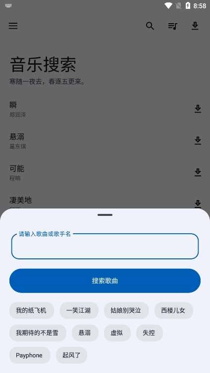 音乐搜索,一款极为专业的在线播放神器,为您提供海量歌曲资源搜索服务。软件资源丰富多样,能满足不同用户的听歌喜好。一键即可播放,方便至极,让您免费畅听,想听什么就听什么。欢迎使用!