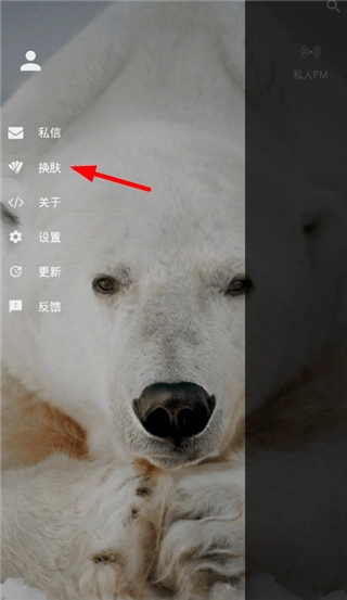 1、开启倒带音乐播放器,轻点左上角的横杠,接着选取“换肤”。