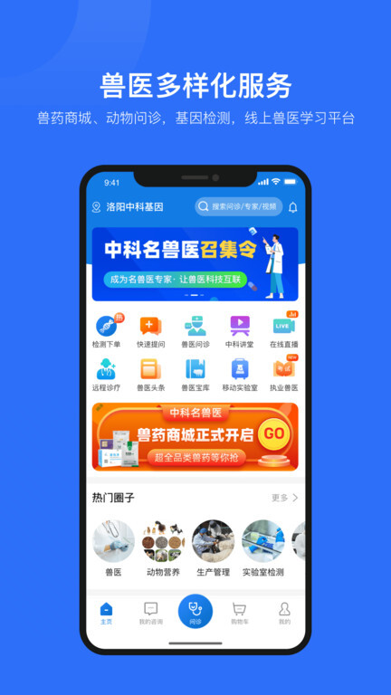 中科名兽医是一款十分实用的线上兽医手机应用,具备各类强大功能,能为你提供专业服务。你可以直接与兽医专家进行线上咨询互动,获取饲养宠物的相关知识;还能预约线下的检测检查服务,快来体验吧!