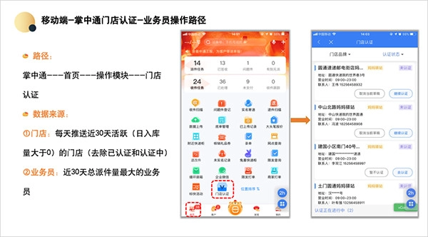如何在掌中通完成门店认证 一、【业务员操作流程】