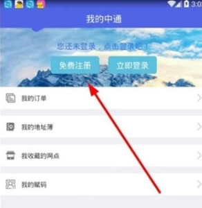 用户在主页点击选择【我的中通】后,再点击上方的【免费注册】按钮即可。