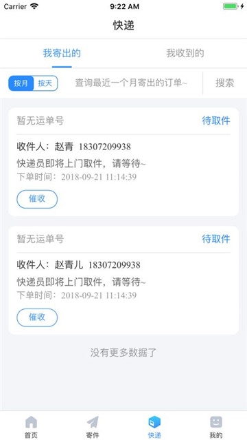 填写完毕后,点击页面底部的【提交】按钮,就能等待快递员上门取件了