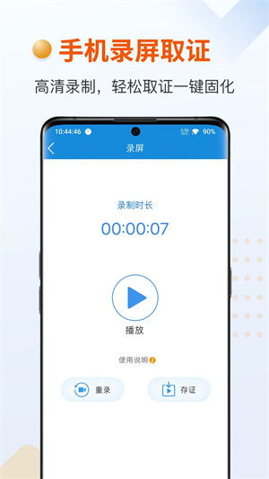 【录屏存证】:证据管家借助录屏功能记录手机屏幕呈现的内容,生成的录屏文件会自动上传并完成固化处理,最终形成无法被否认与篡改的电子证据。