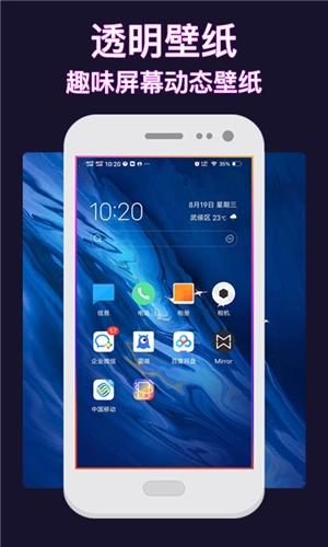 透明屏幕动态墙纸会利用你设备的摄像头来呈现画面,同时让启动器变得透明,你依然能像平时那样操作手机。