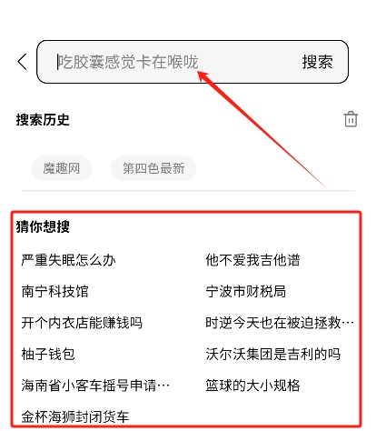 马上打开应用,在主界面的搜索框里输入关键词,浏览器就会给出智能联想词的推荐。