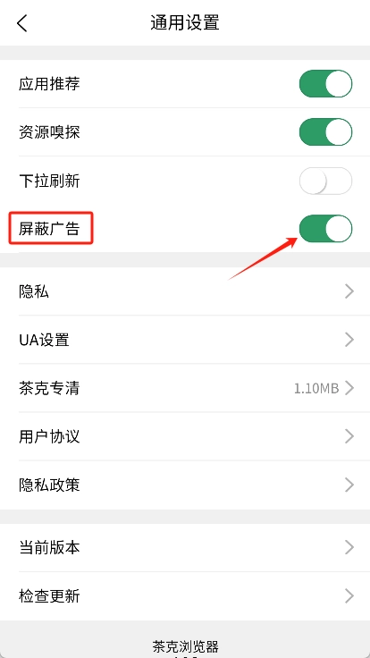 在通用设置里开启“屏蔽广告”功能,就能过滤掉大部分广告,让你拥有更清爽的浏览感受。