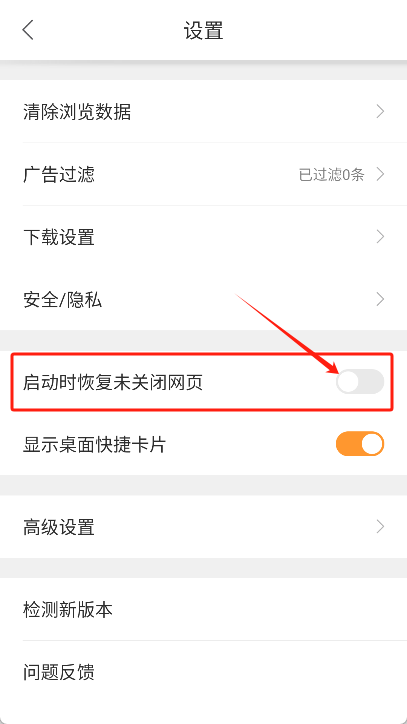 进入设置界面后,找到“启动时恢复未关闭的网页”这一选项。