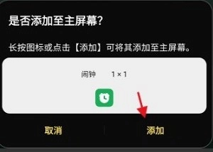 在最后的确认窗口里,点击右下角的“添加”按钮,就能完成闹铃小组件的添加操作。