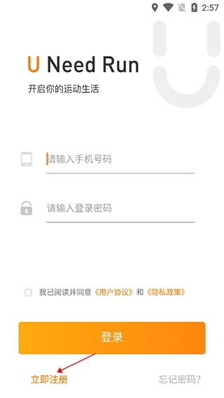 在安装好unirun校园跑后,进入主页面,选择左下角的“立即注册”选项。
