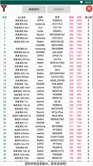 通过每秒操作次数测试来获取单核与多核分数,再将SOC与相近分数的型号进行匹配,方便用户参考查询。