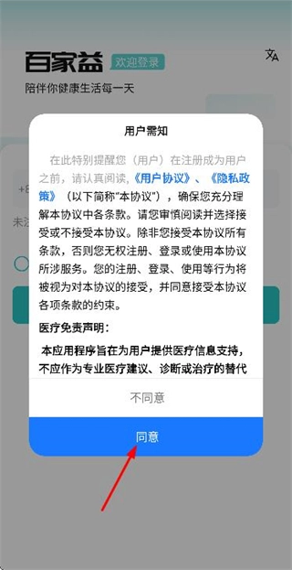 在使用协议和隐私政策的弹窗里点击同意按钮,就能进入登录页面。