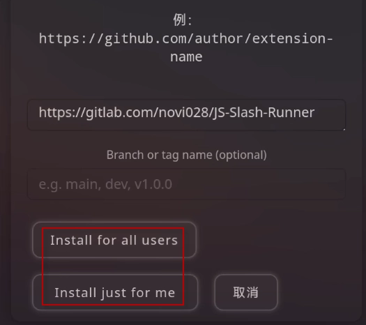 3、接着在框中输入插件的仓库地址。