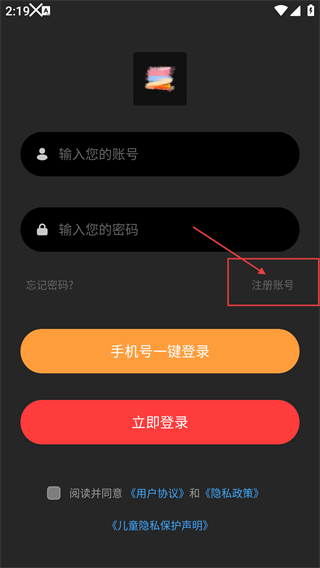 3、在登录界面,要是还没有注册账号,点击【注册账号】按钮,就能进入注册页面,为填写注册信息做准备。