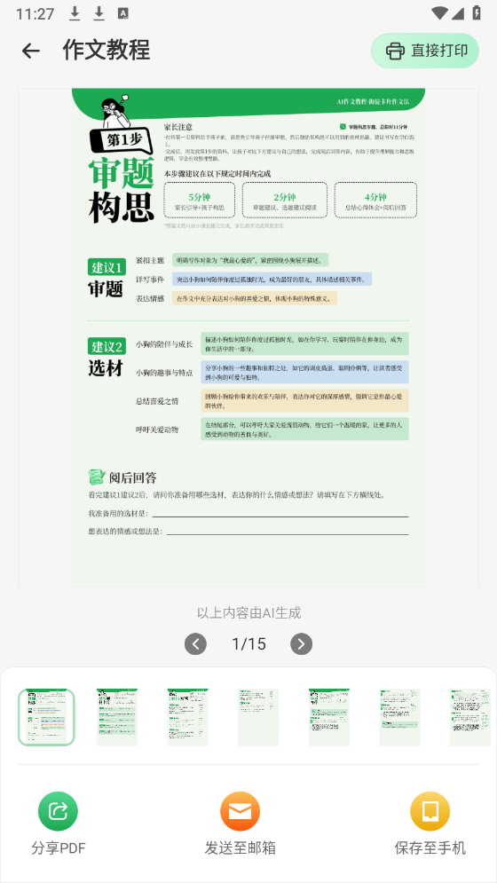6、稍作等待后,可前往“我的”-“我的作文教程”页面进行查看,也能对作文进行打印操作。