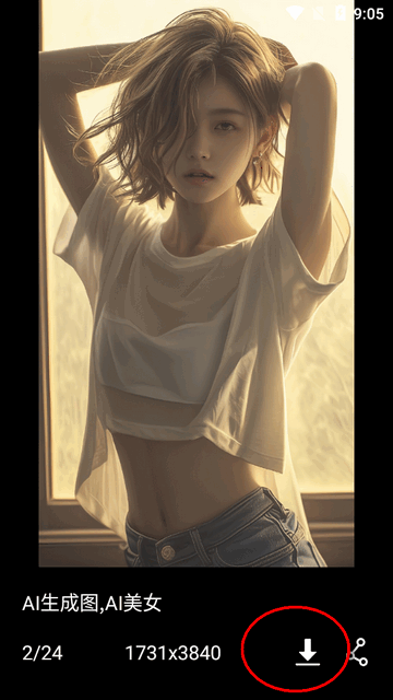 3、点击选中的壁纸后,能看到图片的大小信息,还可以通过点击按钮将其保存到手机上。