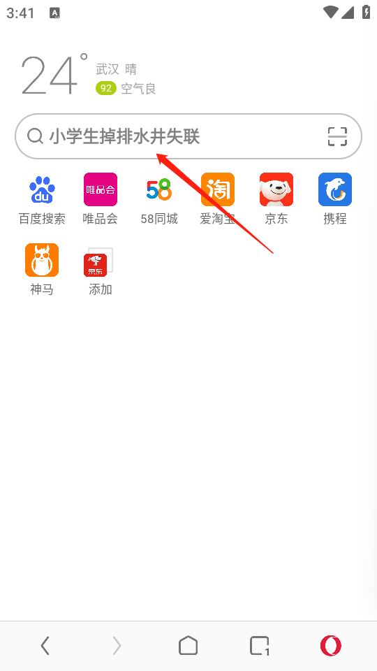 1、进入首页,点击搜索框位置。