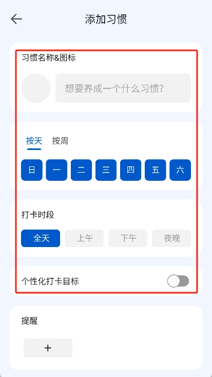 2、接着打开应用,点击习惯养成界面里的“+”号,以此来创建新的打卡目标。