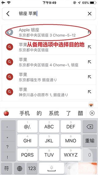3、当地图上显示出目的地坐标后,打开屏幕下方的菜单就能查看目的地的详细信息