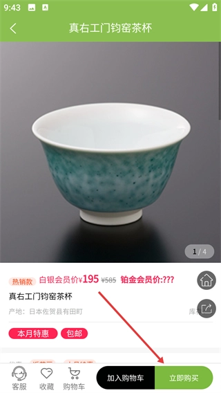 3、在商品列表里找到你要的商品(比如【真右工门钧窑茶杯】),点击它就能进入商品详情页。